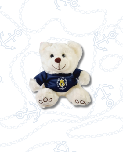 Maskotka przytulanka "URSO" dla dzieci w koszulce Uniwersytetu Morskiego w Gdyni.
